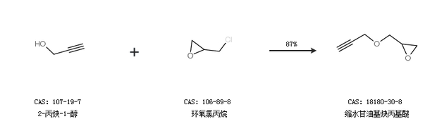 1.通过2-丙炔-1-醇和环氧氯丙烷合成缩水甘油基炔丙基醚,收率约87%;