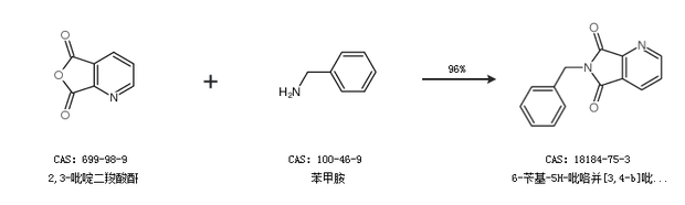 1.通过2,3-吡啶二羧酸酐和苯甲胺合成6-苄基-5H-吡咯并[3,4-b]吡啶-5,7(6H)-二酮,收率约96%;