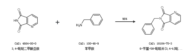 2.通过3,4-吡啶二甲酰亚胺和苯甲胺合成6-苄基-5H-吡咯并[3,4-b]吡啶-5,7(6H)-二酮,收率约96%;