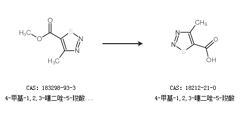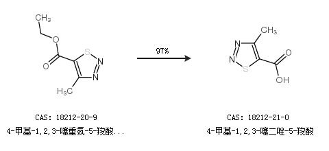 1.通过4-甲基-1,2,3-噻重氮-5-羧酸乙酯合成4-甲基-1,2,3-噻二唑-5-羧酸,收率约97%;