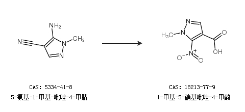 1.通过5-氨基-1-甲基-吡唑-4-甲腈合成1-甲基-5-硝基吡唑-4-甲酸