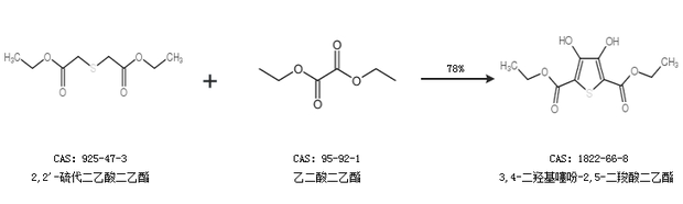 1.通过2,2''-硫代二乙酸二乙酯和乙二酸二乙酯合成3,4-二羟基噻吩-2,5-二羧酸二乙酯,收率约78%;