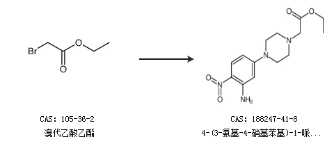 1.通过溴代乙酸乙酯合成4-(3-氨基-4-硝基苯基)-1-哌嗪乙酸乙酯