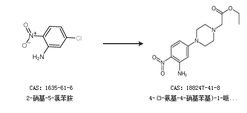 2.通过2-硝基-5-氯苯胺合成4-(3-氨基-4-硝基苯基)-1-哌嗪乙酸乙酯
