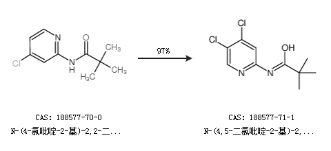 1.通过N-(4-氯吡啶-2-基)-2,2-二甲基丙酰胺合成N-(4,5-二氯吡啶-2-基)-2,2-二甲基丙酰胺,收率约97%;