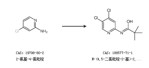 英文别名 N-(4,5-dichloropyridin-2-yl)pivalamide;N-(4,5-dichloro-2-pyridinyl)-2,2-dimethylpropanamide;Propanamide,N-(4,5-dichloro-2-pyridinyl)-2,2-dimethyl;4,5-Dichloro-2-(trimethylacetamido)pyridine;2-trimethylacetamido-4,5-chloro-pyridine;