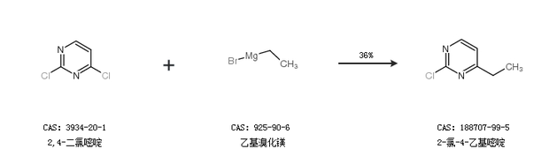 1.通过2,4-二氯嘧啶和乙基溴化镁合成2-氯-4-乙基嘧啶,收率约36%;