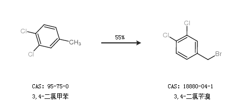 1.通过3,4-二氯甲苯合成3,4-二氯苄溴,收率约67%;