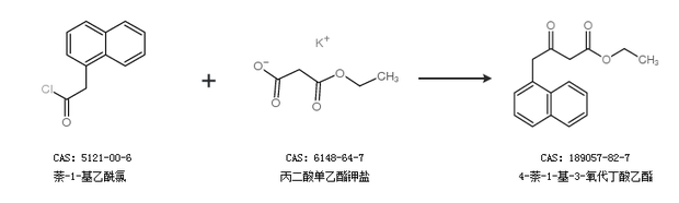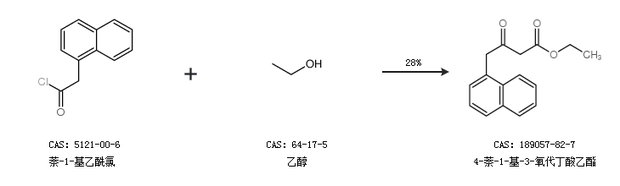 1.通过萘-1-基乙酰氯和乙醇合成4-萘-1-基-3-氧代丁酸乙酯,收率约28%;
