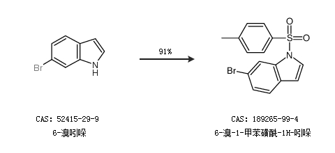 2.通过6-溴吲哚合成6-溴-1-甲苯磺酰-1H-吲哚,收率约91%;