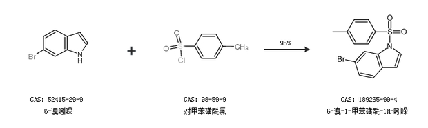 1.通过6-溴吲哚和对甲苯磺酰氯合成6-溴-1-甲苯磺酰-1H-吲哚,收率约95%;