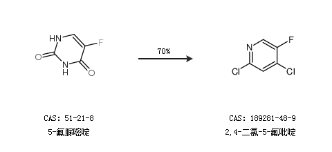 1.通过5-氟脲嘧啶合成2,4-二氯-5-氟吡啶,收率约70%;