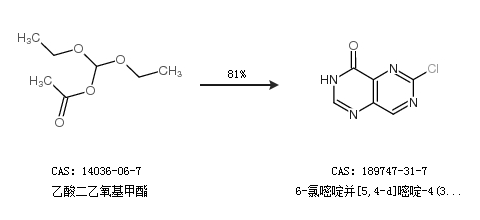 1.通过乙酸二乙氧基甲酯合成6-氯嘧啶并[5,4-d]嘧啶-4(3H)-酮,收率约81%;