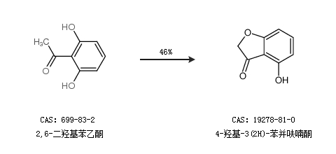 1.通过2,6-二羟基苯乙酮合成4-羟基-3(2H)-苯并呋喃酮,收率约46%;