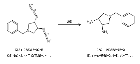 1.通过(3S,4s)-3,4-二叠氮基-1-(苯基甲基)吡咯烷合成(S,s)-n-苄基-3,4-反式-二氨基吡咯烷,收率约10%;