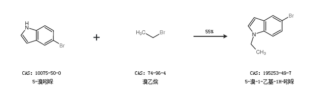 2.通过5-溴吲哚和溴乙烷合成5-溴-1-乙基-1H-吲哚,收率约55%;