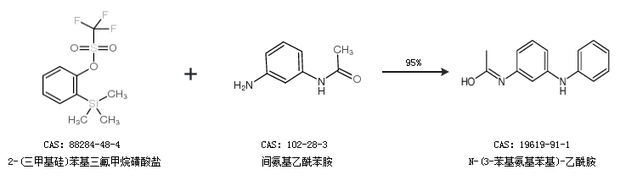 1.通过2-(三甲基硅)苯基三氟甲烷磺酸盐和间氨基乙酰苯胺合成N-(3-苯基氨基苯基)-乙酰胺,收率约95%;