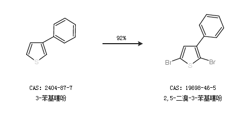 1.通过3-苯基噻吩合成2,5-二溴-3-苯基噻吩,收率约92%;