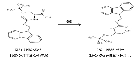 1.通过FMOC-O-叔丁基-L-丝氨酸合成(R)-2-(Fmoc-氨基)-3-叔丁氧基-1-丙醇,收率约90%;