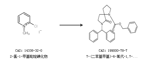 1.通过2-氯-1-甲基吡啶碘化物合成7-(二苯基甲基)-6-氧代-1,7-二氮杂螺[4.4]壬烷-1-羧酸苯基甲酯