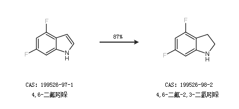 1.通过4,6-二氟吲哚合成4,6-二氟-2,3-二氢吲哚,收率约87%;