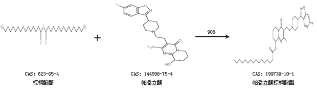 2.通过棕榈酸酐和帕潘立酮合成帕潘立酮棕榈酸酯,收率约90%;