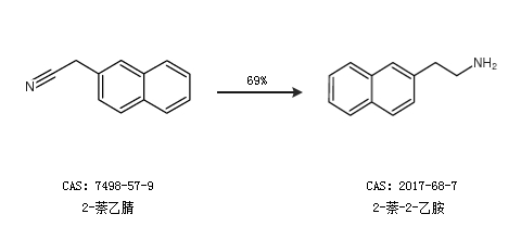 1.通过2-萘乙腈合成2-萘-2-乙胺,收率约69%;