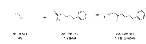 1.通过甲醇和5-苯基戊酸合成5-苯基-正戊酸甲酯,收率约93%;