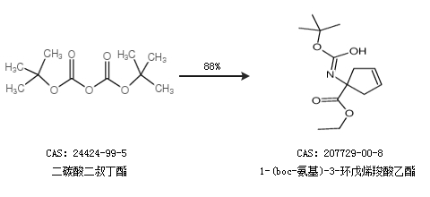 1.通过二碳酸二叔丁酯合成1-(boc-氨基)-3-环戊烯羧酸乙酯,收率约88%;