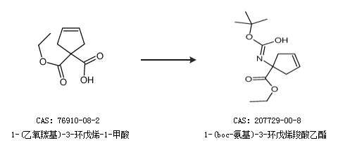 2.通过1-(乙氧羰基)-3-环戊烯-1-甲酸合成1-(boc-氨基)-3-环戊烯羧酸乙酯