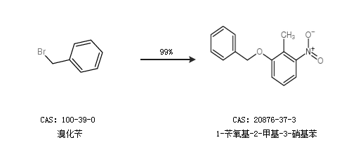 2.通过溴化苄合成1-苄氧基-2-甲基-3-硝基苯,收率约99%;