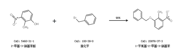 1.通过2-甲基-3-硝基苯酚和溴化苄合成1-苄氧基-2-甲基-3-硝基苯,收率约98%;