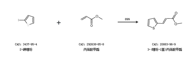 1.通过2-碘噻吩和丙烯酸甲酯合成3-(噻吩-2基)丙烯酸甲酯,收率约89%;