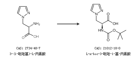 2.通过3-(1-吡唑基)-L-丙氨酸合成L-n-boc-3-吡唑-1-基-丙氨酸