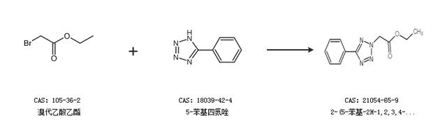 2.通过溴代乙酸乙酯和5-苯基四氮唑合成2-(5-苯基-2H-1,2,3,4-四唑-2-基)-乙酸乙酯