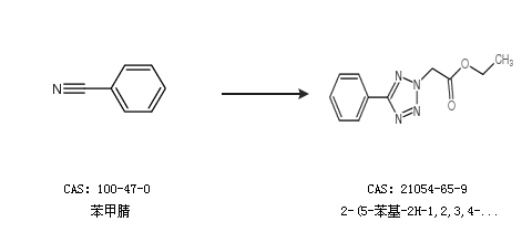 1.通过苯甲腈合成2-(5-苯基-2H-1,2,3,4-四唑-2-基)-乙酸乙酯