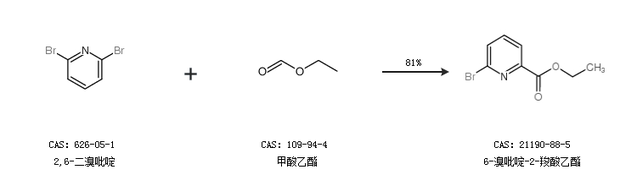 1.通过2,6-二溴吡啶和甲酸乙酯合成6-溴吡啶-2-羧酸乙酯,收率约81%;