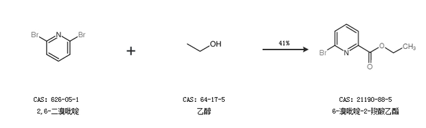 2.通过2,6-二溴吡啶和乙醇合成6-溴吡啶-2-羧酸乙酯,收率约41%;