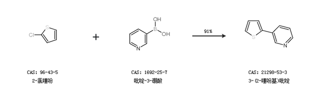 2.通过2-氯噻吩和吡啶-3-硼酸合成3-(2-噻吩基)吡啶,收率约91%;