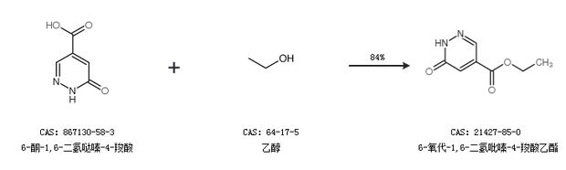 1.通过6-酮-1,6-二氢哒嗪-4-羧酸和乙醇合成6-氧代-1,6-二氢吡嗪-4-羧酸乙酯,收率约84%;