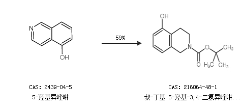 1.通过5-羟基异喹啉合成叔-丁基 5-羟基-3,4-二氢异喹啉-2(1H)-甲酸,收率约59%;