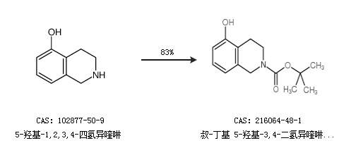 2.通过5-羟基-1,2,3,4-四氢异喹啉合成叔-丁基 5-羟基-3,4-二氢异喹啉-2(1H)-甲酸,收率约83%;