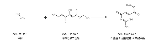 1.通过甲醇和草酰乙酸二乙酯合成2-氨基-6-羟基嘧啶-4-羧酸甲酯