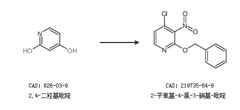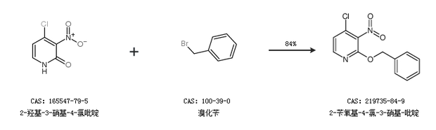 1.通过2-羟基-3-硝基-4-氯吡啶和溴化苄合成2-苄氧基-4-氯-3-硝基-吡啶,收率约84%;