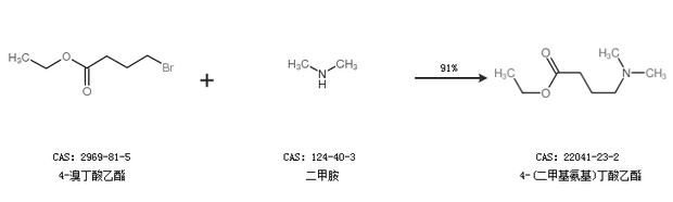 1.通过4-溴丁酸乙酯和二甲胺合成4-(二甲基氨基)丁酸乙酯,收率约91%;