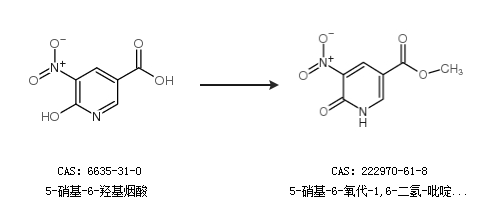 2.通过甲醇和5-硝基-6-羟基烟酸合成5-硝基-6-氧代-1,6-二氢-吡啶-3-羧酸甲酯