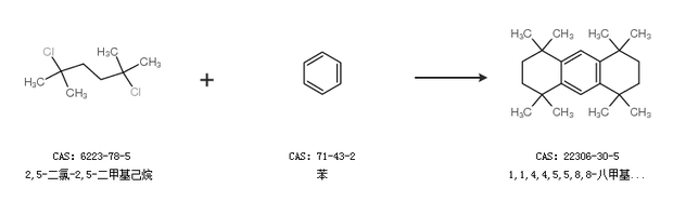2.通过2,5-二氯-2,5-二甲基己烷和苯合成1,1,4,4,5,5,8,8-八甲基-1,2,3,4,5,6,7,8-八氢蒽