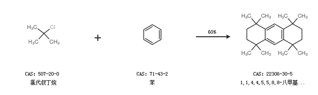 1.通过氯代叔丁烷和苯合成1,1,4,4,5,5,8,8-八甲基-1,2,3,4,5,6,7,8-八氢蒽,收率约60%;