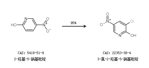 1.通过2-羟基-5-硝基吡啶合成3-氯-2-羟基-5-硝基吡啶,收率约95%;