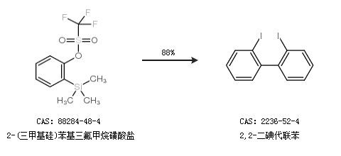 2.通过2-(三甲基硅)苯基三氟甲烷磺酸盐合成2,2-二碘代联苯,收率约88%;
